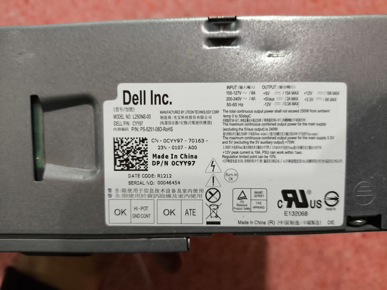 POWER برند: Dell مدل: L250NS-00 سازنده: LiteOn Technology